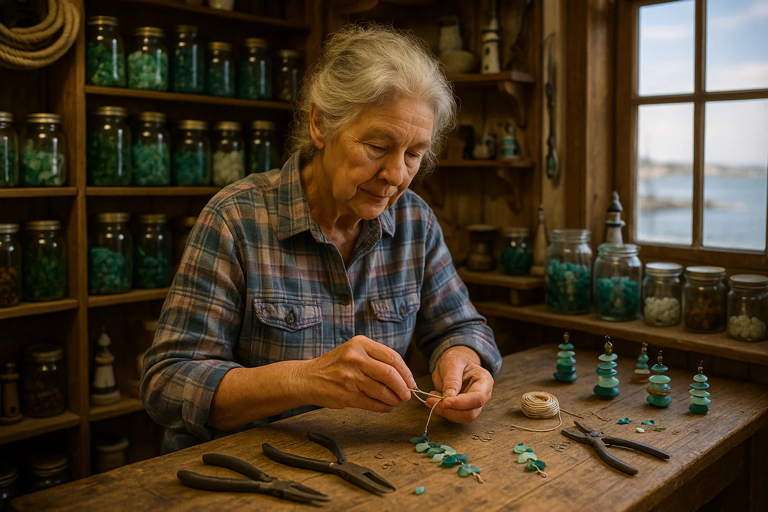 Each shade of blue, green or frosted white is assembled with patience in my 215 sq ft workshop, despite my trembling hands. Proof that even broken things can become beautiful — it just takes time, patience, and a little love.